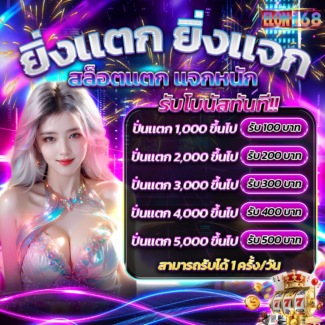 ELON168 พร้อมมอบความคุ้มค่าระดับพรีเมียมด้วยการก้าวขึ้นเป็นอันดับหนึ่งในเรื่องการแจกโบนัสฟรีและโปรโมชั่นสุดพิเศษที่ออกแบบมาเพื่อต้อนรับสมาชิกใหม่ทุกท่านอย่างเหนือระดับ ทันทีที่คุณก้าวเข้าสู่โลกการเดิมพันกับเรา คุณจะได้รับสิทธิประโยชน์มากมายตั้งแต่วินาทีแรกที่สมัครสมาชิก ไม่ว่าจะเป็นโบนัสเครดิตฟรีที่ช่วยเพิ่มทุนในการปั่นสล็อต หรือโปรโมชั่นต้อนรับสมาชิกใหม่ที่ให้ยอดโบนัสเติมเงินสูงที่สุดในไทย ช่วยให้คุณมีโอกาสลุ้นรางวัลแจ็คพอตใหญ่ได้ยาวนานยิ่งขึ้นโดยไม่ต้องใช้ทุนตัวเองสูงจนเกินไป ทุกกิจกรรมและโปรโมชั่นที่นี่ถูกออกแบบมาให้ทำยอดเทิร์นโอเวอร์ต่ำและถอนเงินออกได้จริงอย่างยุติธรรม เพื่อมอบความประทับใจและความคุ้มค่าสูงสุดให้แก่ผู้เล่นทุกคน